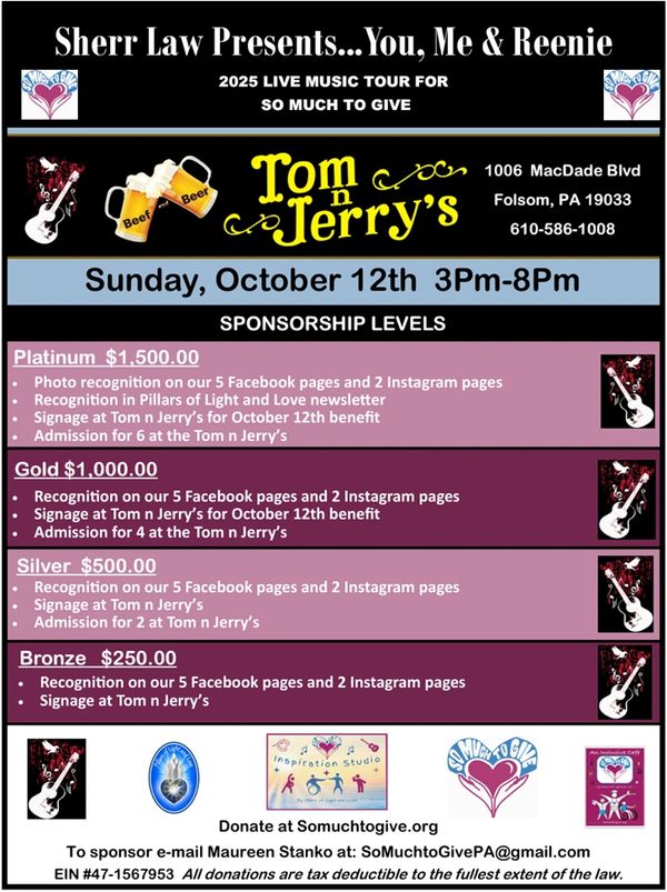 Sunday, November 9th, 2025 (time TBD) Live music fundraiser at Osteria Restaurant in Collegeville, PA with Raffles, 50-50, and Silent Auction